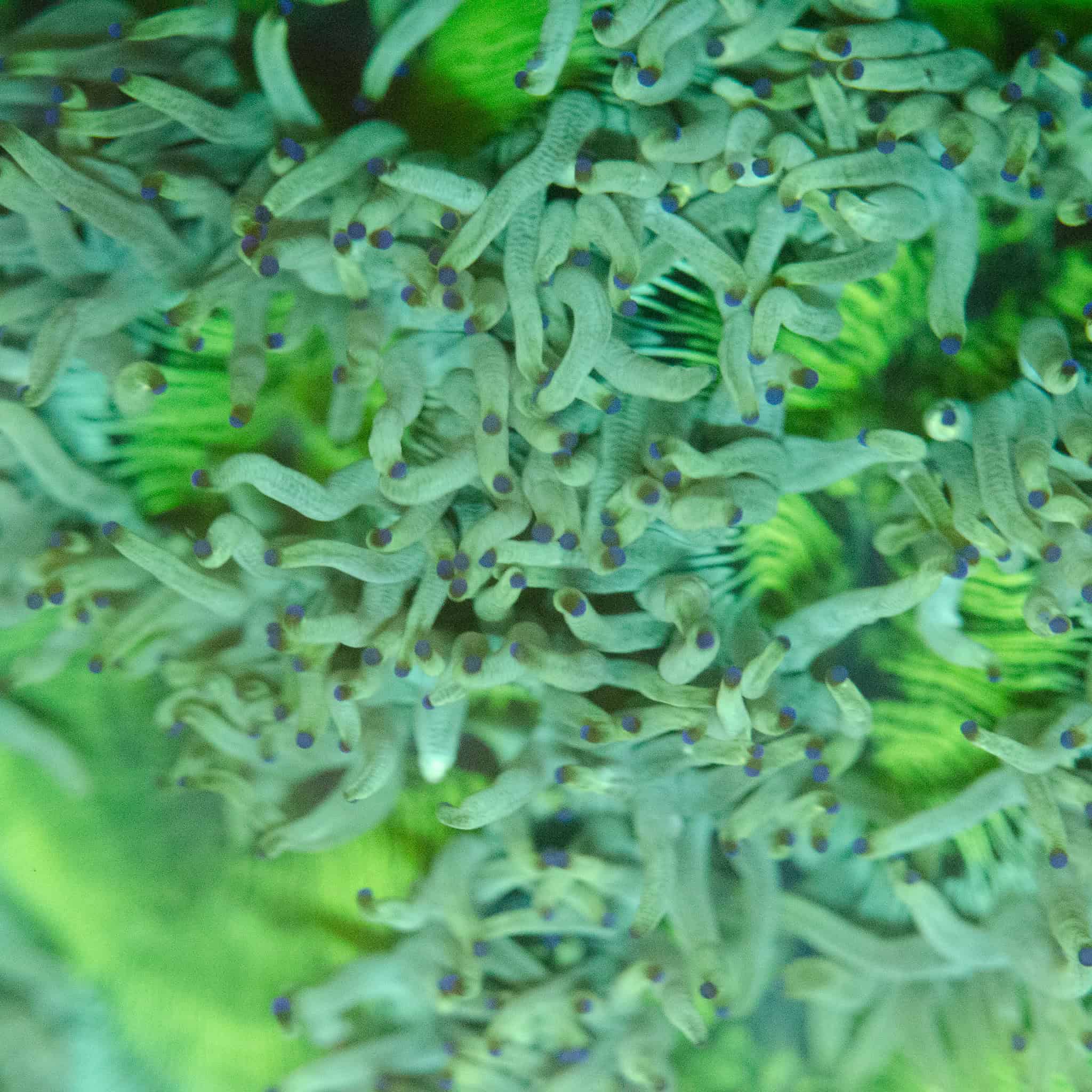 The Giant Yellow Elegance Coral is a breathtaking specimen with radiant yellow oral discs accented by luminous green striping and long, flowing tentacles tipped in subtle purple. Its impressive size and dynamic movement make it a living focal point in any reef, while its vibrant colouration adds both contrast and vibrancy. Best placed in moderate flow and lighting to allow its polyps to sway freely. Perfect for aquarists looking to add both scale and elegance to their display.