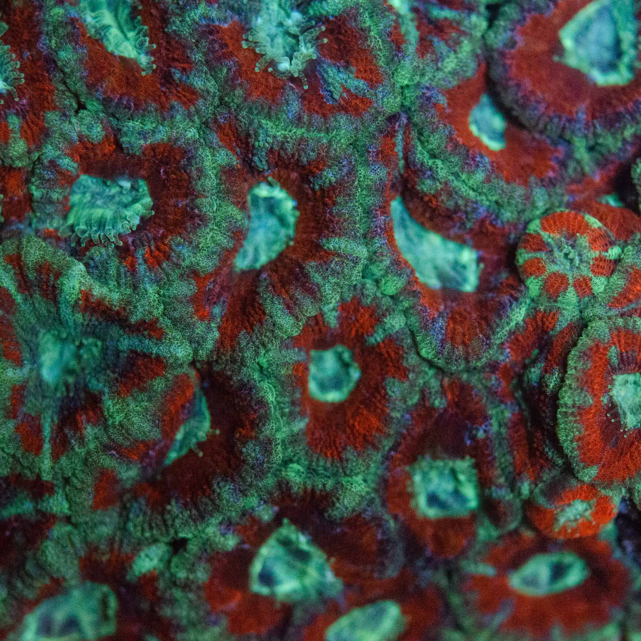 This XXXL Showpiece Acan Lord Colony is the kind of coral that anchors a scape. Easily the size of a small football, itโs absolutely packed with vibrant Acanthastrea lordhowensis polyps in deep red, green, and teal tones. The heads are tightly stacked and full of colour, glowing beautifully under reef lighting. Itโs peaceful, hardy, and perfect for LPS lovers looking for a centrepiece with instant impact. A rare chance to grab a coral of this scale, quality, and condition โ ready to drop straight into your display.